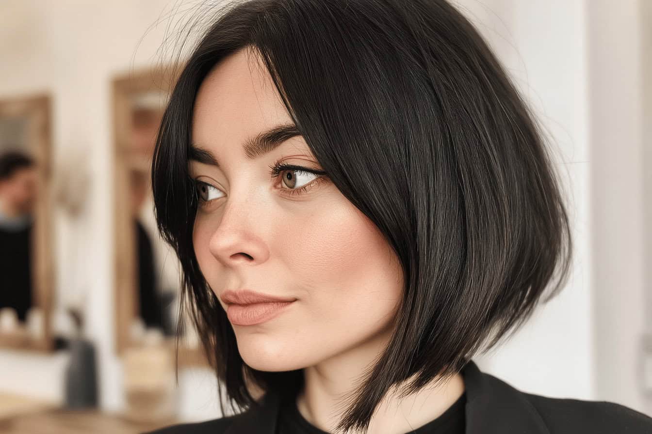Dieser Bob ist nicht nur elegant, sondern auch ein echter Hingucker. Ob im Büro oder bei einem nächtlichen Ausflug, diese Frisur zieht alle Blicke auf sich.