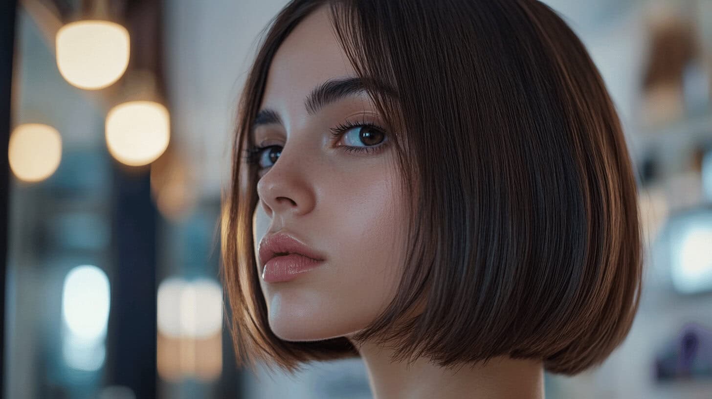 Der Blunt Cut Bob mit geradem Pony strahlt Selbstbewusstsein aus. Diese Frisur ist ideal für alle, die einen klaren und schnörkellosen Stil bevorzugen. Ob im Alltag oder zu besonderen Anlässen, dieser Look zieht Blicke auf sich.
