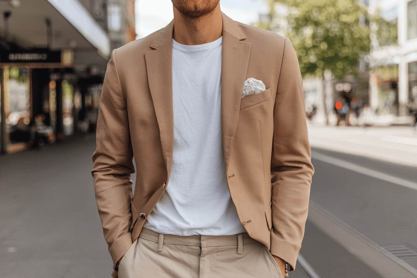 Du willst smart aussehen, ohne overdressed zu wirken? Dann ist ein Look mit beiger Chinohose und Sakko genau das Richtige. Der Stil wirkt sofort aufgeräumt und zeigt, dass du dir Gedanken über dein Outfit machst.